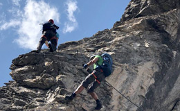 - Normgerechte Klettersteigausrüstung (Hüftgurt, Klettersteigset, Helm, Handschuhe)